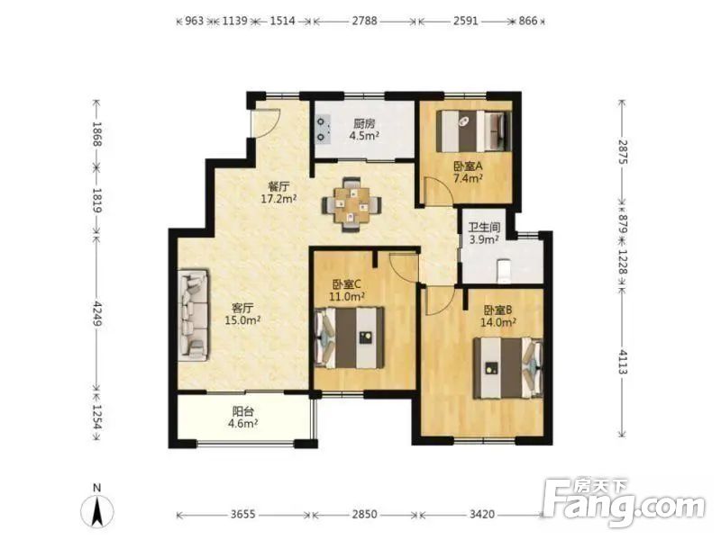 3室2厅1卫