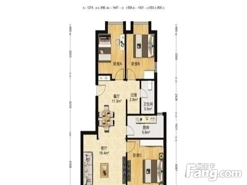 3室2厅1卫