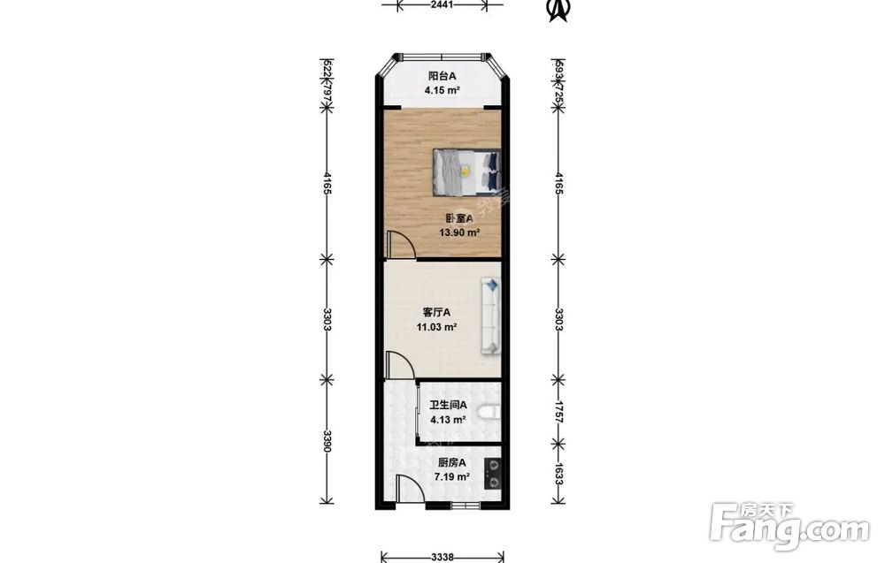 户型介绍:此房户型为1室1厅1卫,建筑面积为41.9平米,朝向为南。