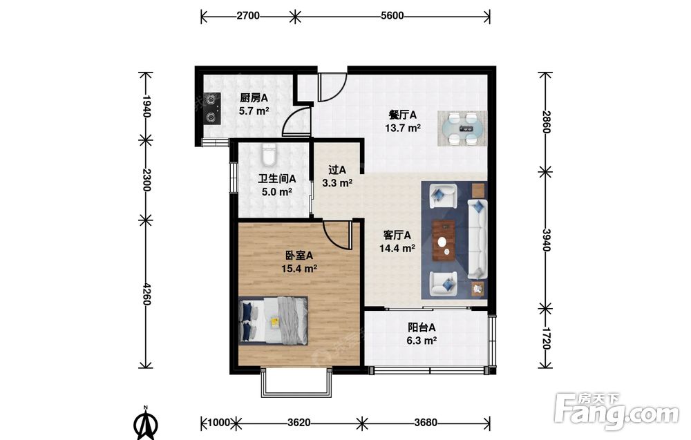 1室2厅1卫