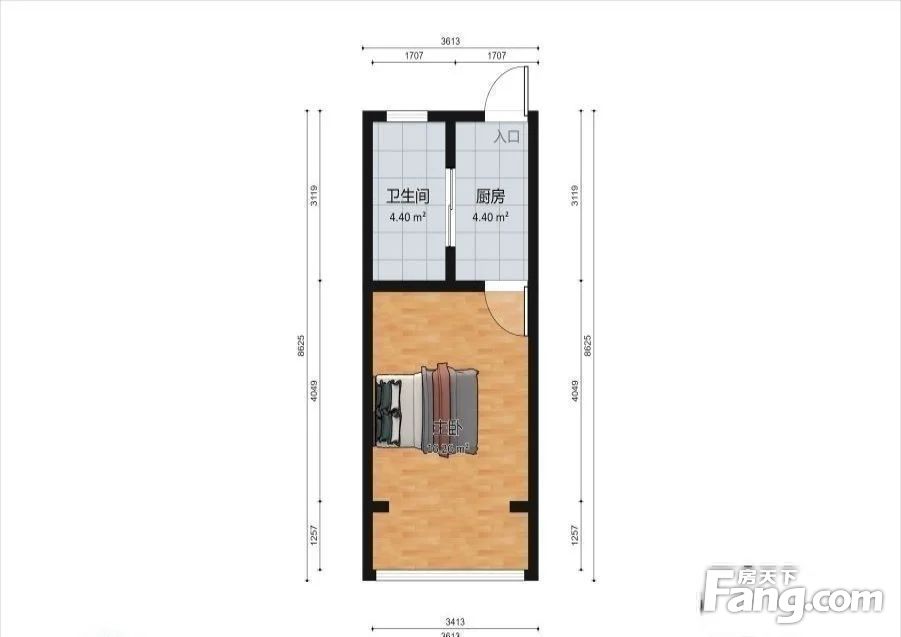 户型:朝南一房,厨卫朝过道,居家装修。