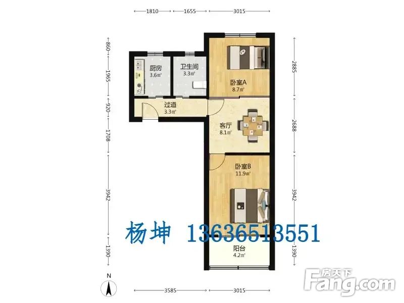1.此房面积55.1平方米,格局方正,没有浪费空间。