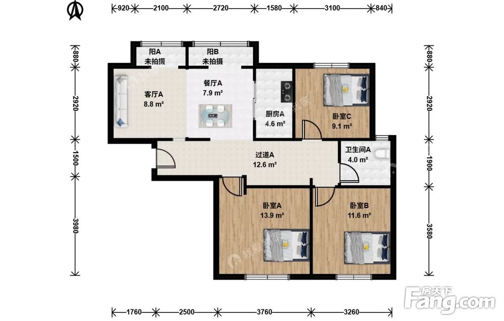 户型介绍:此房户型为3室2厅1卫,建筑面积为95.25平米,朝向为南北。