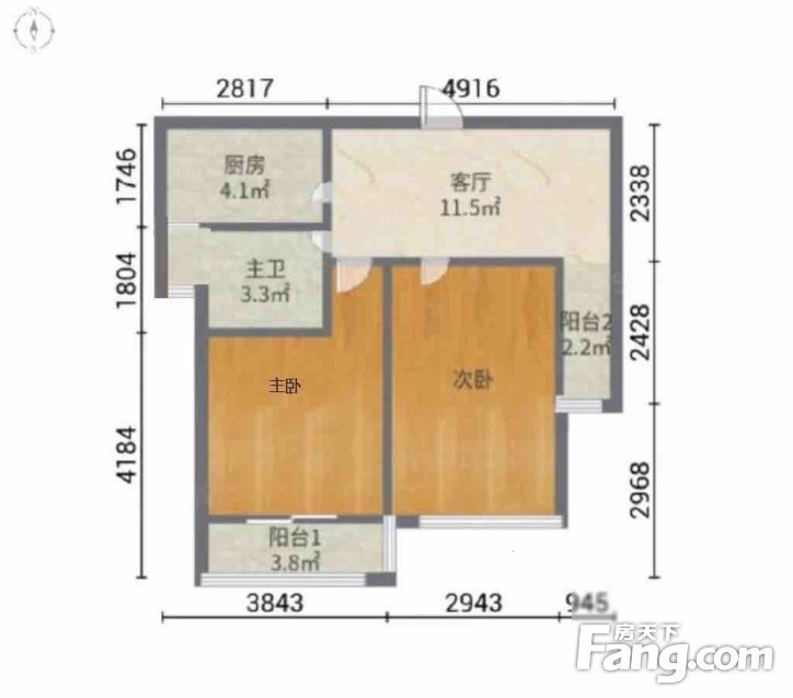 【房型】:户型是双南2房1厅