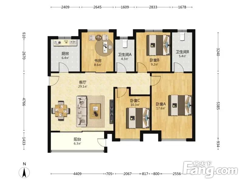 房屋拥有相对宽松的尺寸,布局通透,动静分离,设计豪华